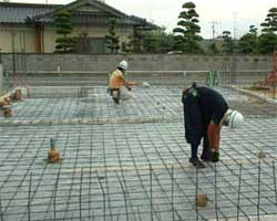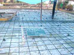 | 敷き、Ф10mm鉄筋を左の写真のように組み立てます。 |