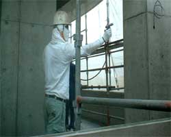 外壁には、下写真のように破水塗料を塗布し